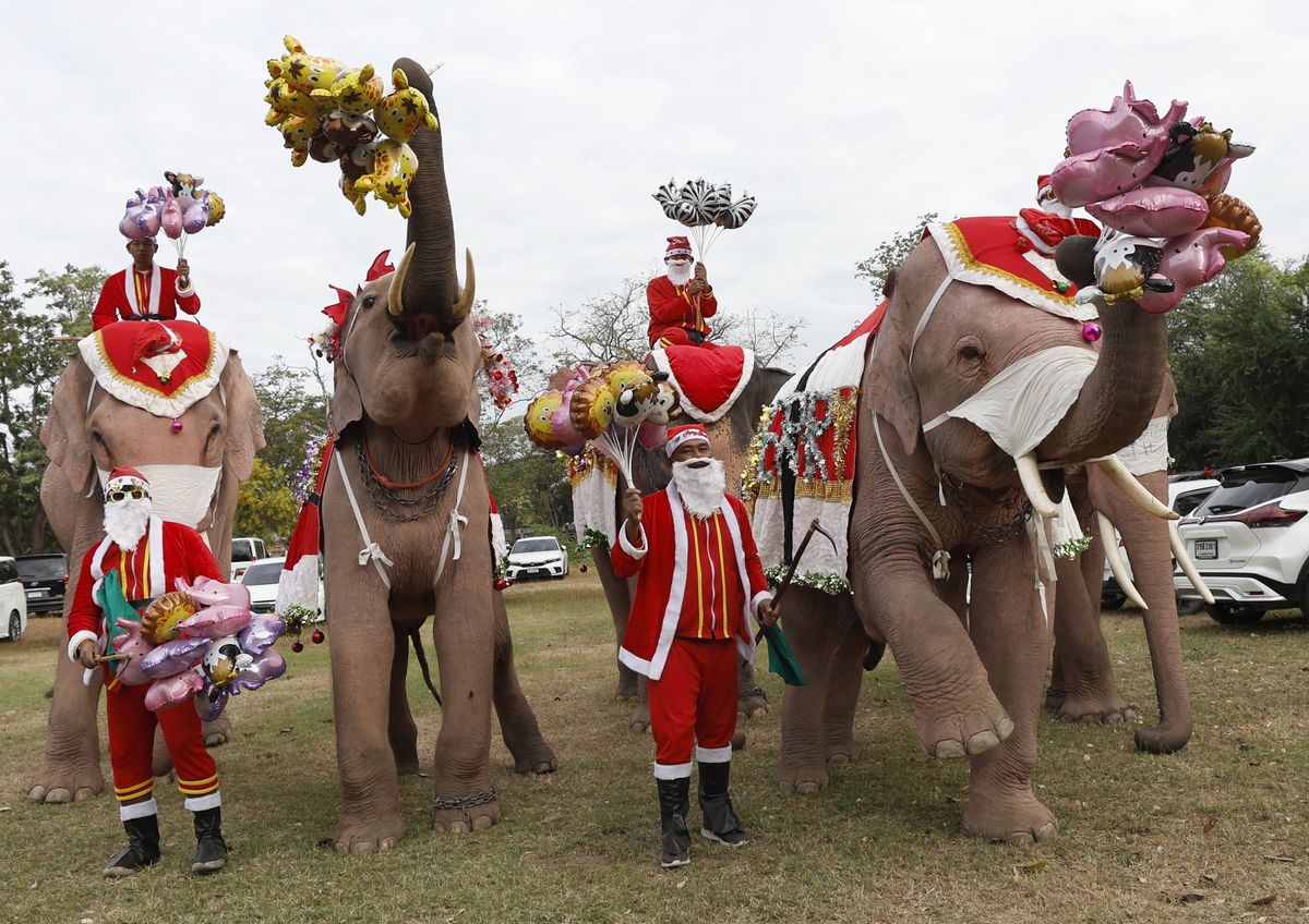 Sloní průvod: V některých turistických oblastech je vyhledávanou atrakcí vánoční průvod, který doprovázejí sloni, oblečení jako Santa Claus, s čepičkami na hlavách.