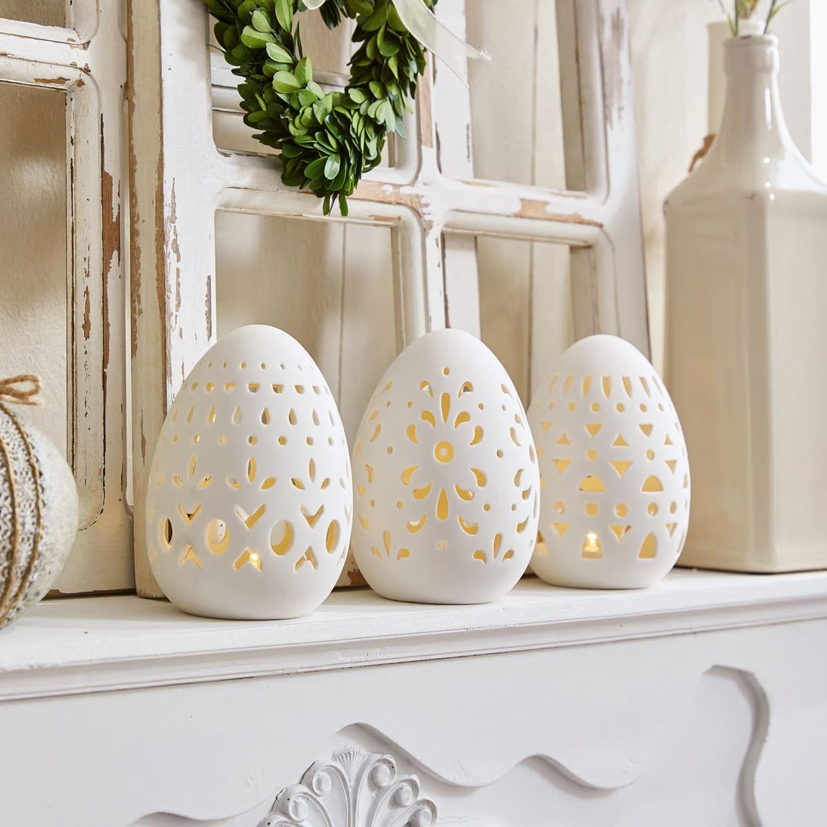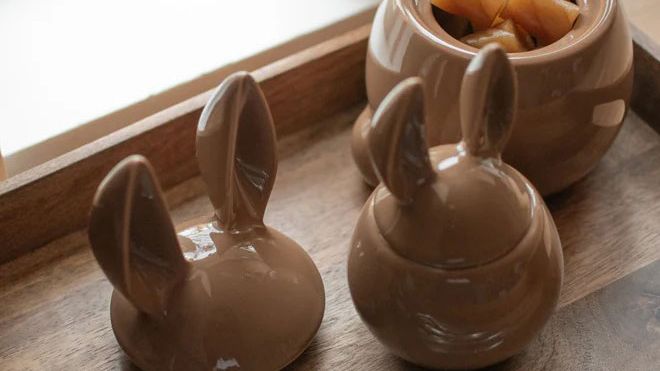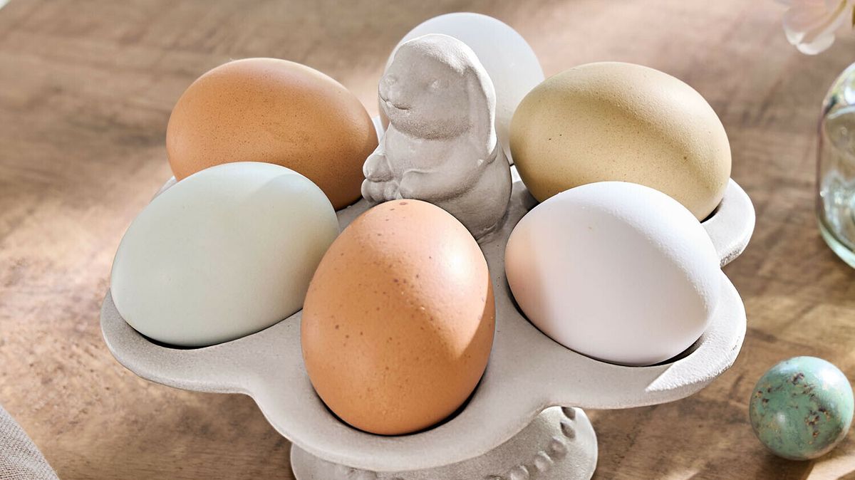 A teď přichází na řadu typicky velikonoční prvek. Místo klasických kraslic zkuste třeba vajíčka v přírodním stylu – nebarvená, jemně tónovaná nebo zdobená minimalistickou kresbou. Skvěle fungují i vejce nebo figurky s velikonoční tématikou z kamene nebo keramiky, které působí jako stylový designový doplněk.