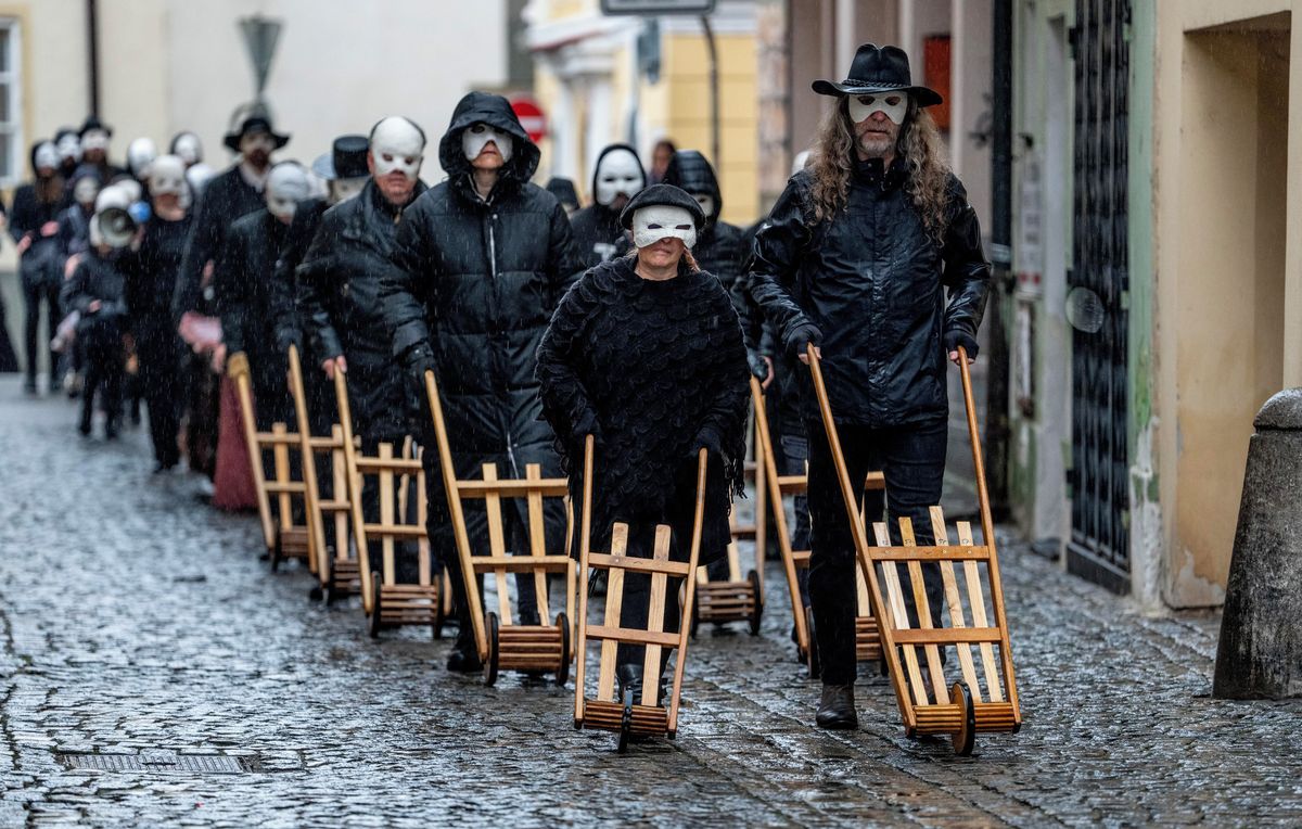 Velikonoční hrkání v Českých Budějovicích. Tradiční průvod masek s nástroji centrem městaFoto: Michal Šula, Borgis