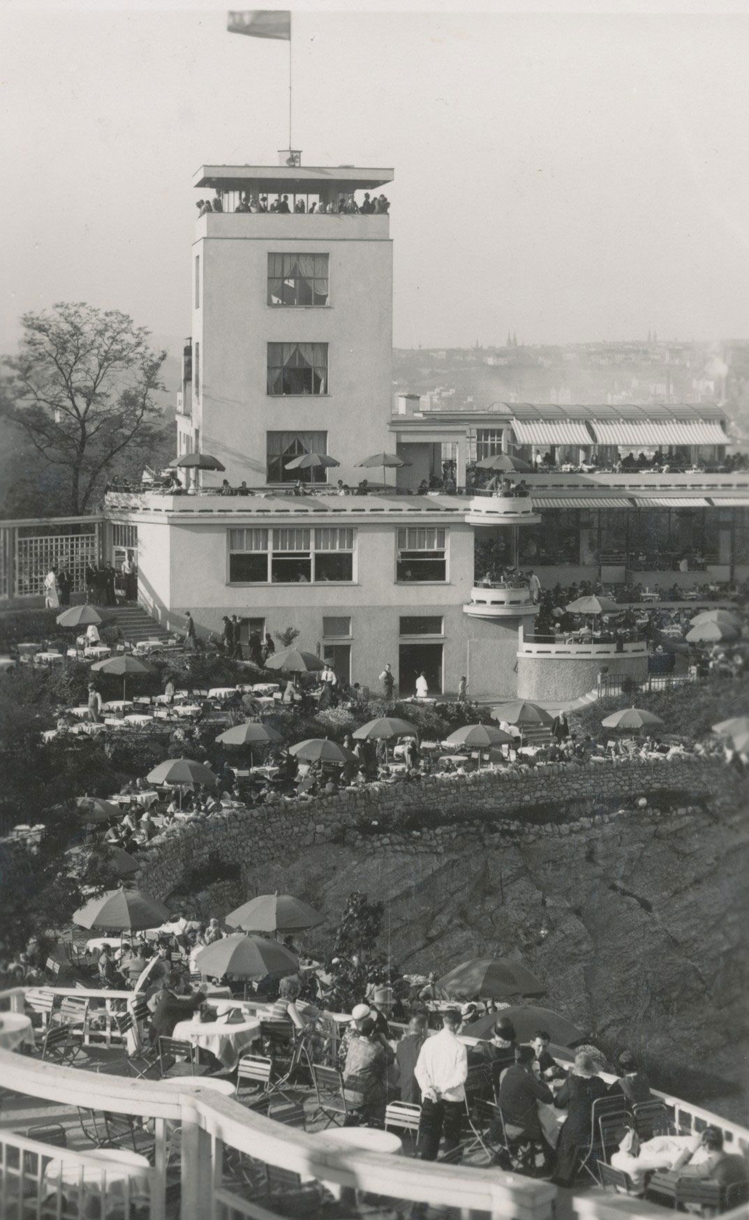 Barrandovské terasy ale nebyly jen lepší restaurací s výhledem. Byly symbolem sebevědomé první republiky, místem, který přerostl v kulturní fenomén. V baru se tančilo, do restaurace chodilo na dobrý nedělní oběd, zatímco dole v bazénu trénovali skokani.