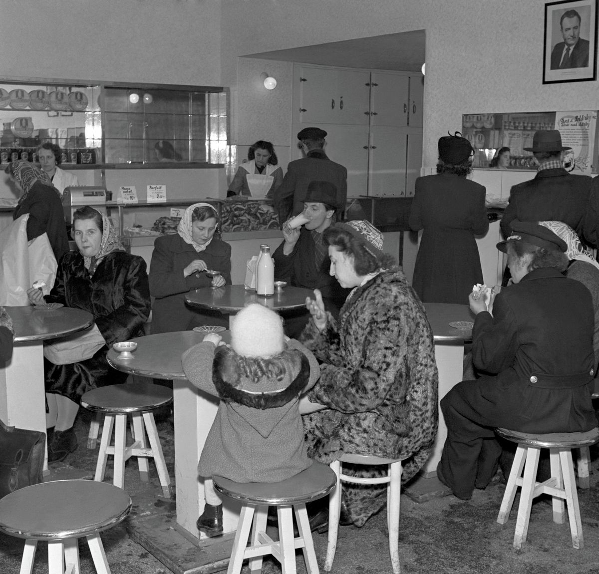 Mléčný bar na Václavském náměstí. Chodili sem lidé z různých společenských vrstev, někdo na oběd, jiný jen tak na svačinku či na pohárFoto: Peterka Miroslav, ČTK