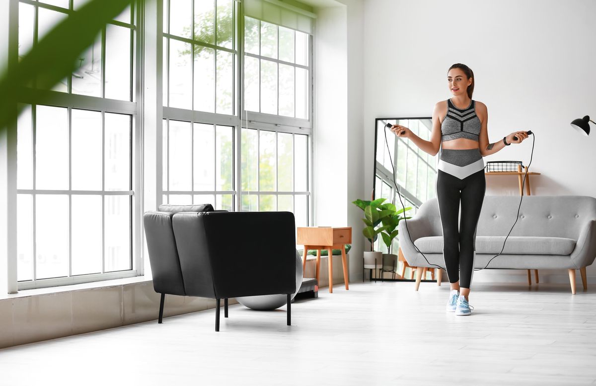 Nejen že skákání rozproudí krev a nastartuje tělo, ale má schopnost vyčistit i hlavu. Když se na něj soustředíte, zapomenete na starosti. Jeho rytmus uklidňuje, začnete vyplavovat endorfiny a za pár minut je vám líp. K náladě přispěje i to, že se nemusíte vypravit někam ven nebo do tělocvičny, kde se bojíte posměšků, ale faldy můžete natřásat doma, za zavřenými dveřmi.
