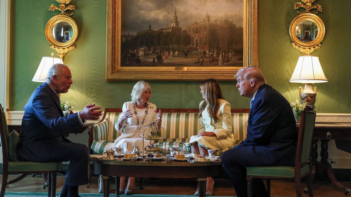 Král Karel III. s královnou Camillou zahájili čtyřdenní státní návštěvu USA slavnostním přivítáním v Bílém domě, kde je Donald a Melania Trumpovi přivítali čajem v Zeleném sále a následnou prohlídkou nového včelího úlu na jižním trávníku.