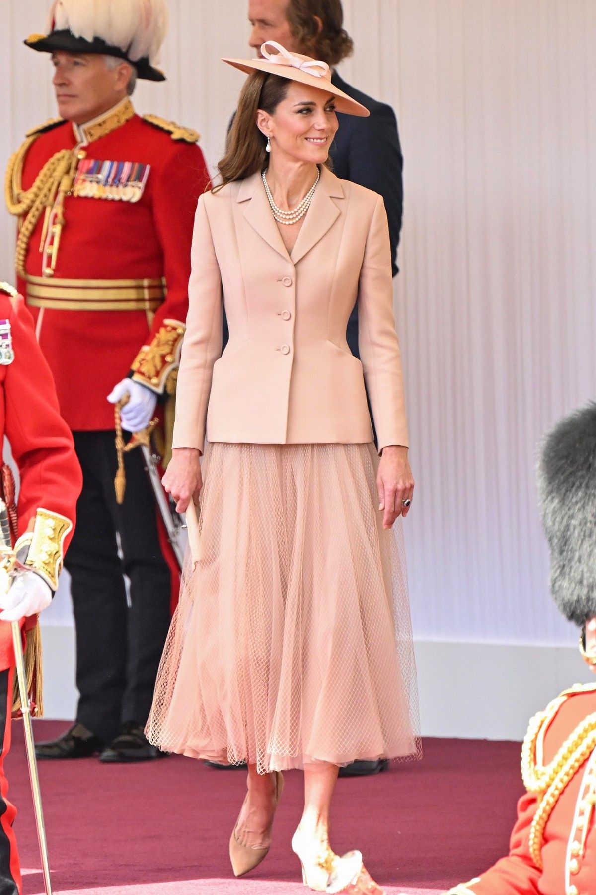Svůj šatník skládá princezna Kate převážně z tvorby britských návrhářů a značek, a když se rozhodne udělat výjimku, má pro to vždy dobrý důvod. Na státní návštěvu francouzského prezidenta Emmanuela Macrona například oblékla model francouzské značky Dior, konkrétně ikonické projmuté sako odkazující na klasickou new look siluetu z 50. let.