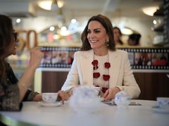 Šaty doplnila ikonickou tiárou Lover’s Knot, kterou nosila už princezna Diana, a diamantovými náušnicemi královny Alžběty II. Na levé straně živůtku měla připnutý Řád královny Alžběty II. a přes šaty jí vedla modrá šerpa Řádu královny Viktorie doplněná stříbrnou hvězdou. Všechny tyto prvky dodaly celému outfitu formální charakter a zdůraznily její oficiální roli princezny z Walesu.