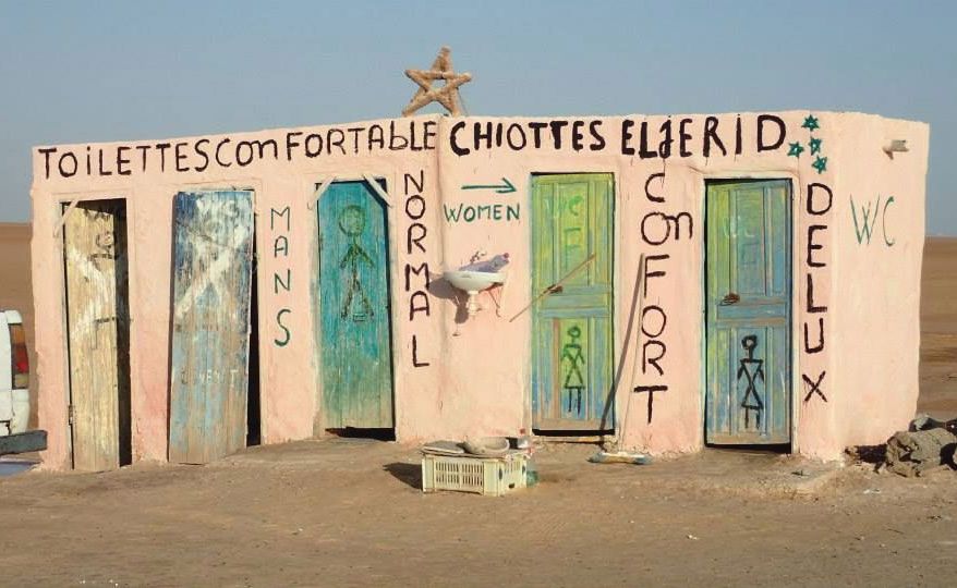 SEO editorka Tereza: Na Sahaře by člověk spíš čekal, že mezi dunami zahlédne velblouda než záchody – a přece, uprostřed písečného prázdna stojí „pouštní toaletní zóna“, která v tom nekonečnu působí skoro jako bizarní oáza. Rozhodně nic, co by připomínalo městské designové záchodky. Místo vybavení tu najdete jen kýbl s vodou a všudypřítomný písek. Funguje to… nějak. Jen toaletní papír musíte dost hledat – ten je zjevně vyhrazen VIP sekci Deluxe.