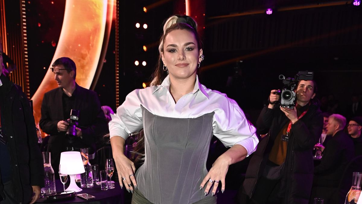 Velmi pozoruhodný byl model, který na červený koberec vynesla zpěvačka a influencerka Dominique Alagia. Róba od designérky Denisy Dovalové jí perfektně lichotila. Precizně zpracovaný top v peplum střihu působil téměř jako architektonické dílo a celý look završily dlouhé operní rukavičky.
