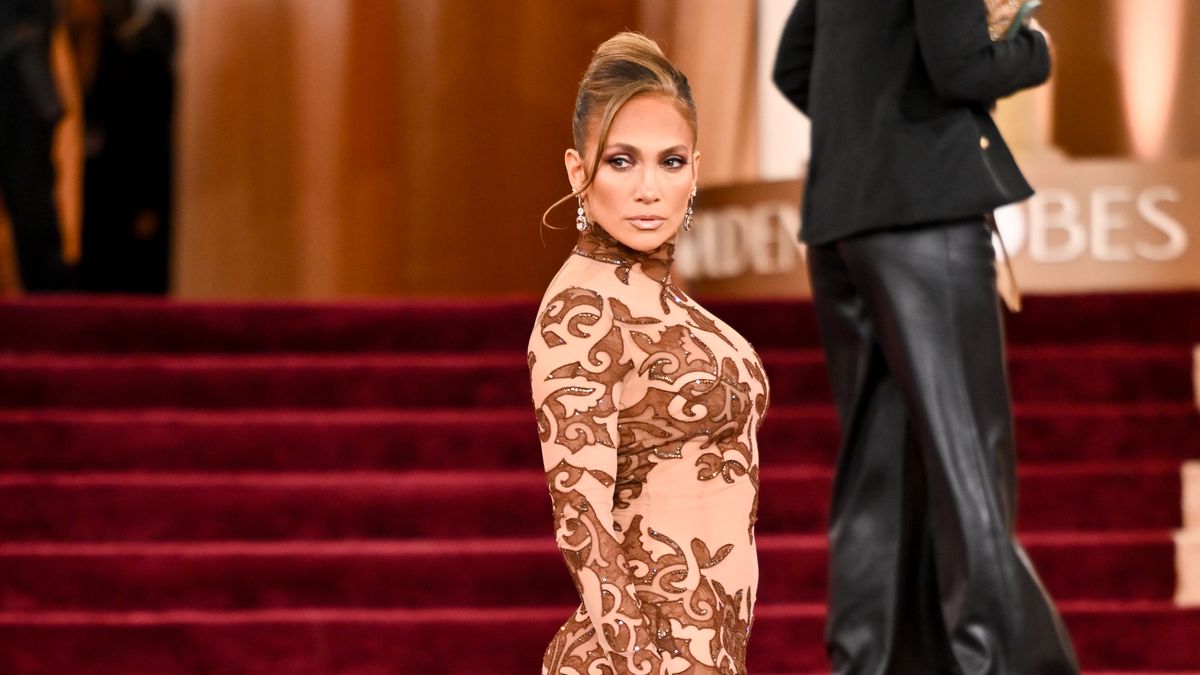 Jak už to tak u Jennifer Lopez bývá, libuje si ve výrazných, nepřehlédnutelných a mnohdy až dramatických róbách. Jinak tomu nebylo ani letos, kdy na rozdávání Zlatých glóbů vynesla vintage model z roku 2003 od francouzského návrháře Jean-Louis Scherrera, jež byl velkou hvězdou především ve 20. století. Šlo o průsvitné nude šaty, které zdobily hnědé krajkové aplikace a v dolní části je zdobil nepřehlédnutelný tylový lem ve stylu mořské panny.
