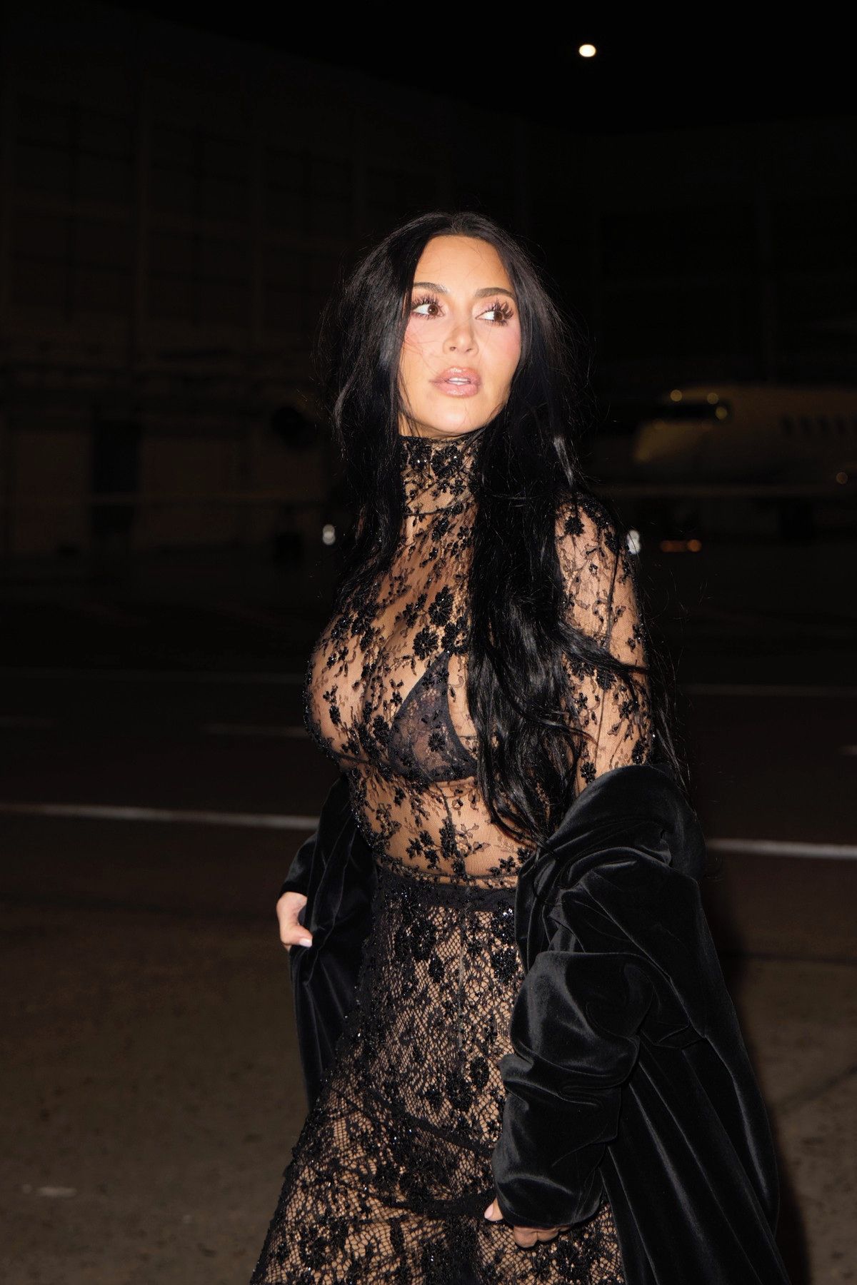Kim Kardashian oproti tomu chtěla svůj sexy outfit na rande ukázat světu. Hvězda, která naposledy randila před dvěma lety s hráčem amerického fotbalu Odellem Beckhamem Jr., si oblékla průsvitnou krajkovou kombinézu od značky Balenciaga, z pod které vykukovala mikro trojúhelníková podprsenka od SKIMS.