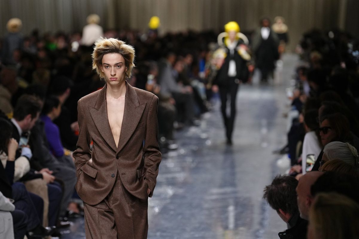 Přehlídka byla všechno, jen ne obvyklá. „Nechci normalitu,“ nechal se návrhář slyšet ještě před samotnou show a svým slovům dostál. Ozvláštnily ji divoké žluté paruky i zdánlivě nesourodé outfity.