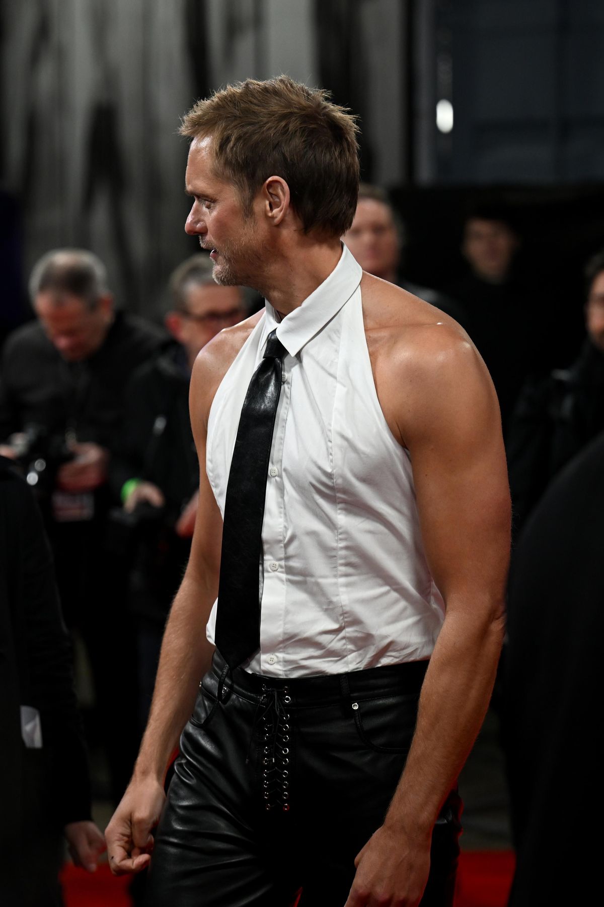 Košilový top za krk zkombinoval s koženými kalhotami a za stylingem stojí VIP stylista Harry Lambert. Herec oblékl značku Ludovic de Saint Sernin a fanoušci jim za odvahu tleskají. Jestli si někdo může dovolit takový střih košile, je to jedině Alexander. Věřili byste, že příští rok oslaví 50?