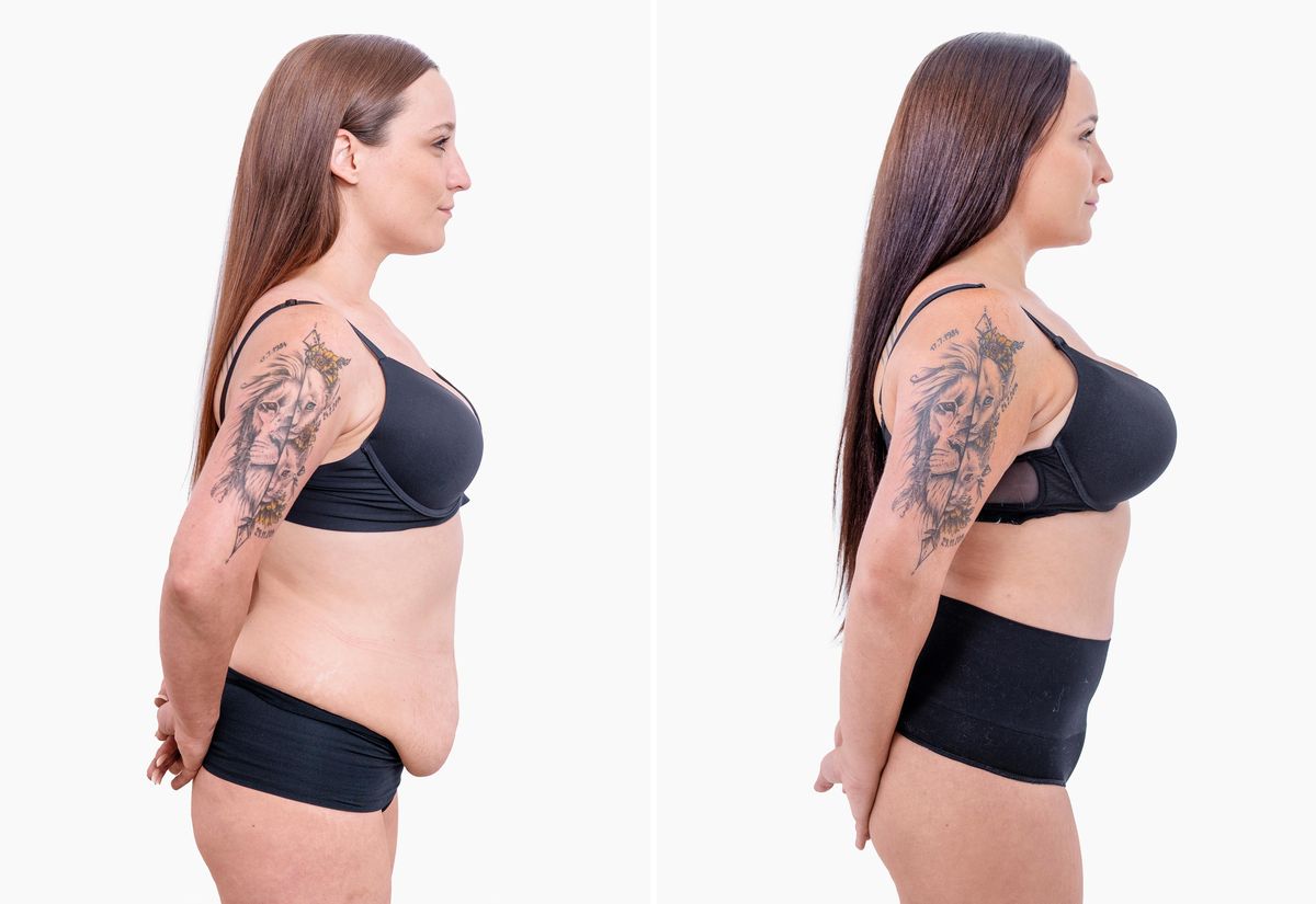 „Paní Laura přišla s poměrně častým problémem, který se vyskytuje u klientek po porodu nebo velkém úbytku váhy. Během zákroku jsme odstranili nadbytečné tkáně v dolní části břicha, takzvaný převis, lépe definovali konturu boků a korigovali diastázu plastikou přímého břišního svalu. Pro dokonalý a přirozený efekt jsme na závěr vyšili pupeční jizvu do správné pozice. Výsledek je dle mého vynikající – břicho vypadá štíhlejší, plošší a klientce už především nic nepřekáží. Může si lépe užívat oblíbené aktivity i dobrý pocit ze sebe samé,“ vysvětlil operatér MUDr. Petr Šuk z Medicom Clinic v Praze.
