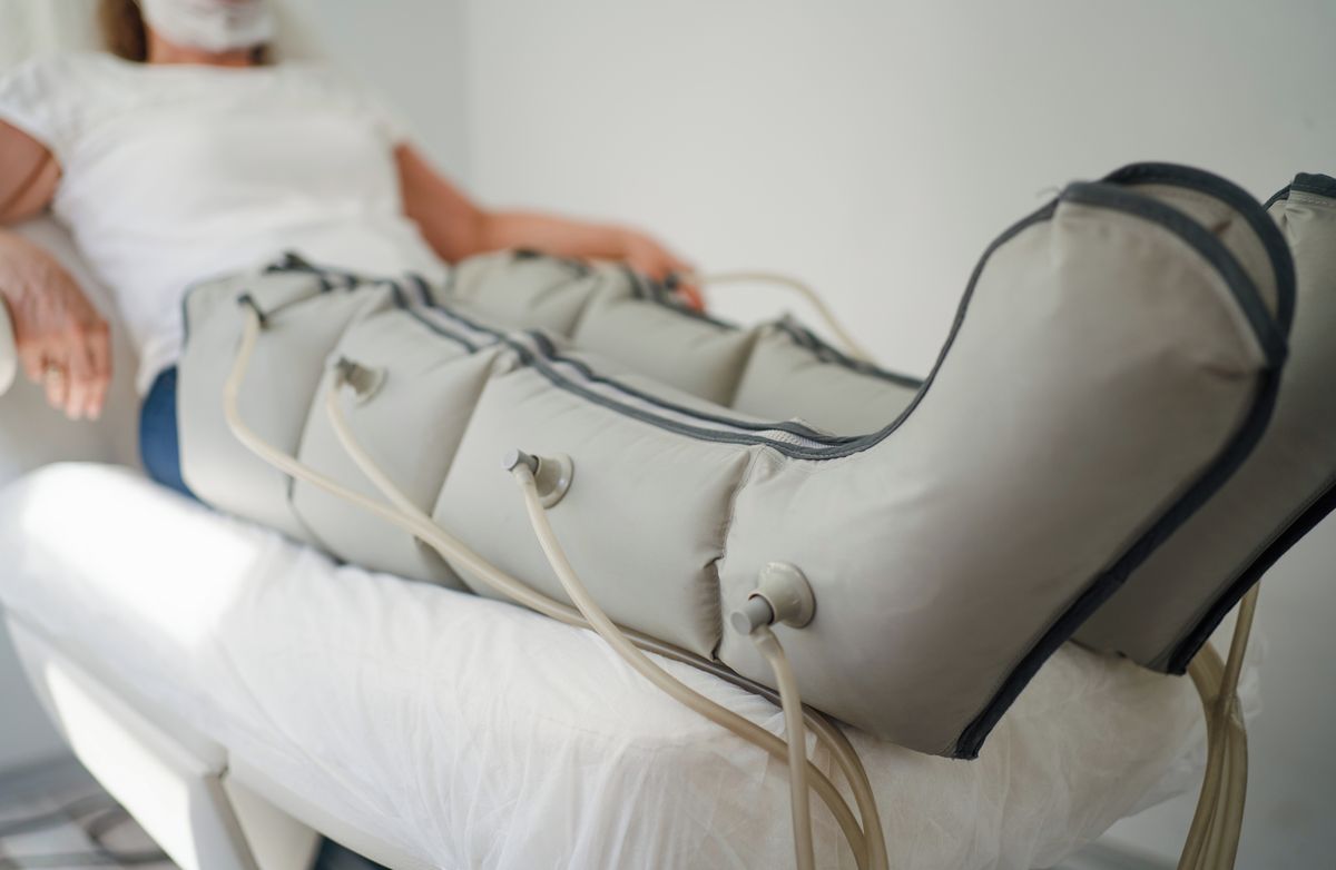 Před kompresní masáží ve speciálních nohavicích je potřeba ručně uvolnit mízní uzliny a prodýchat se do břicha a do hrudníkuFoto: Phynart Studio, Gettyimages.com